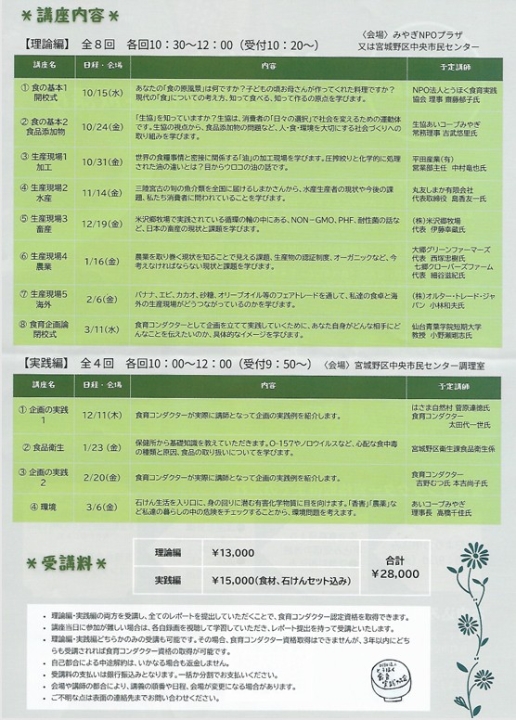 ・講座内容: 食の語り部を目指した食にまつわる現状や課題など